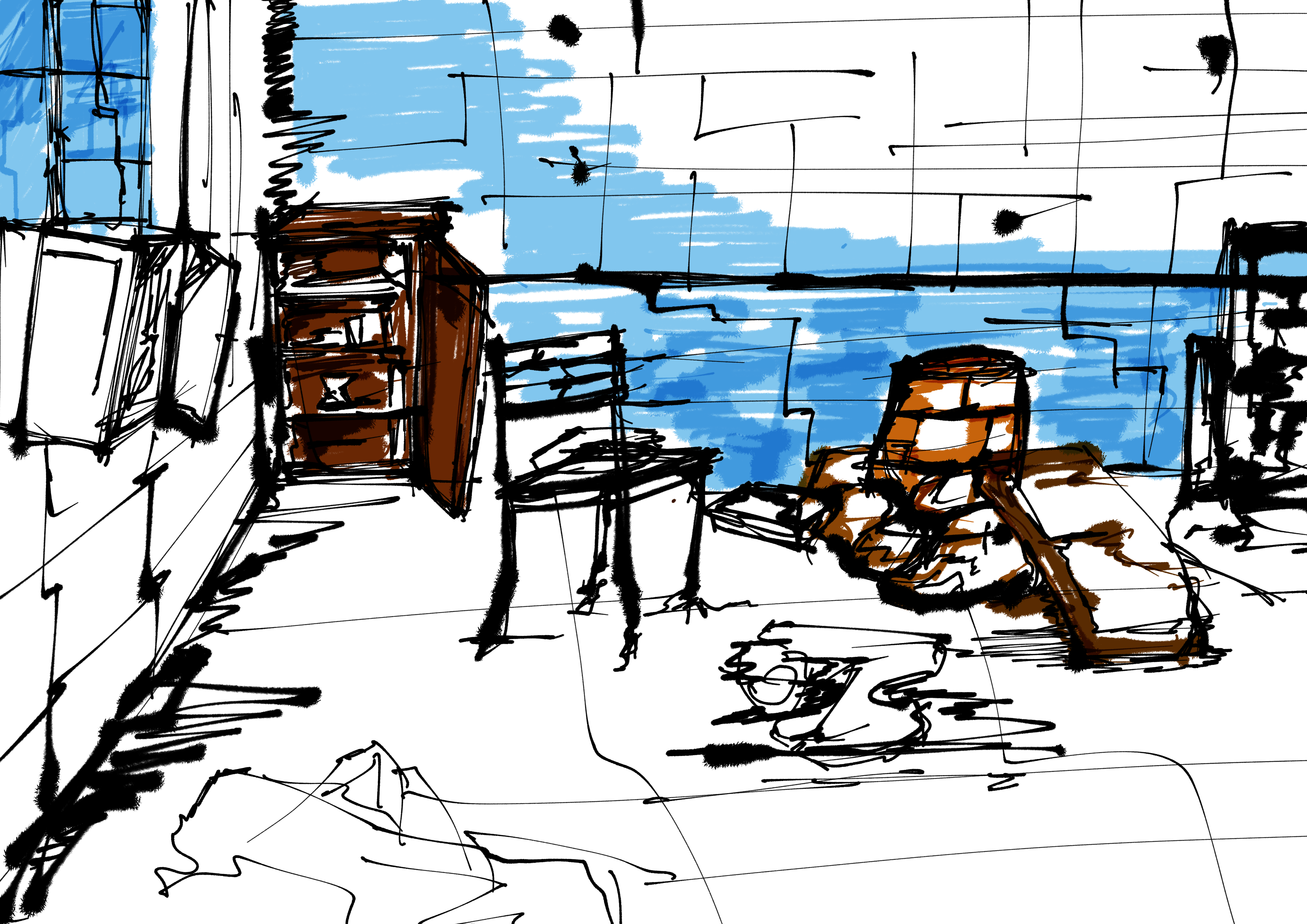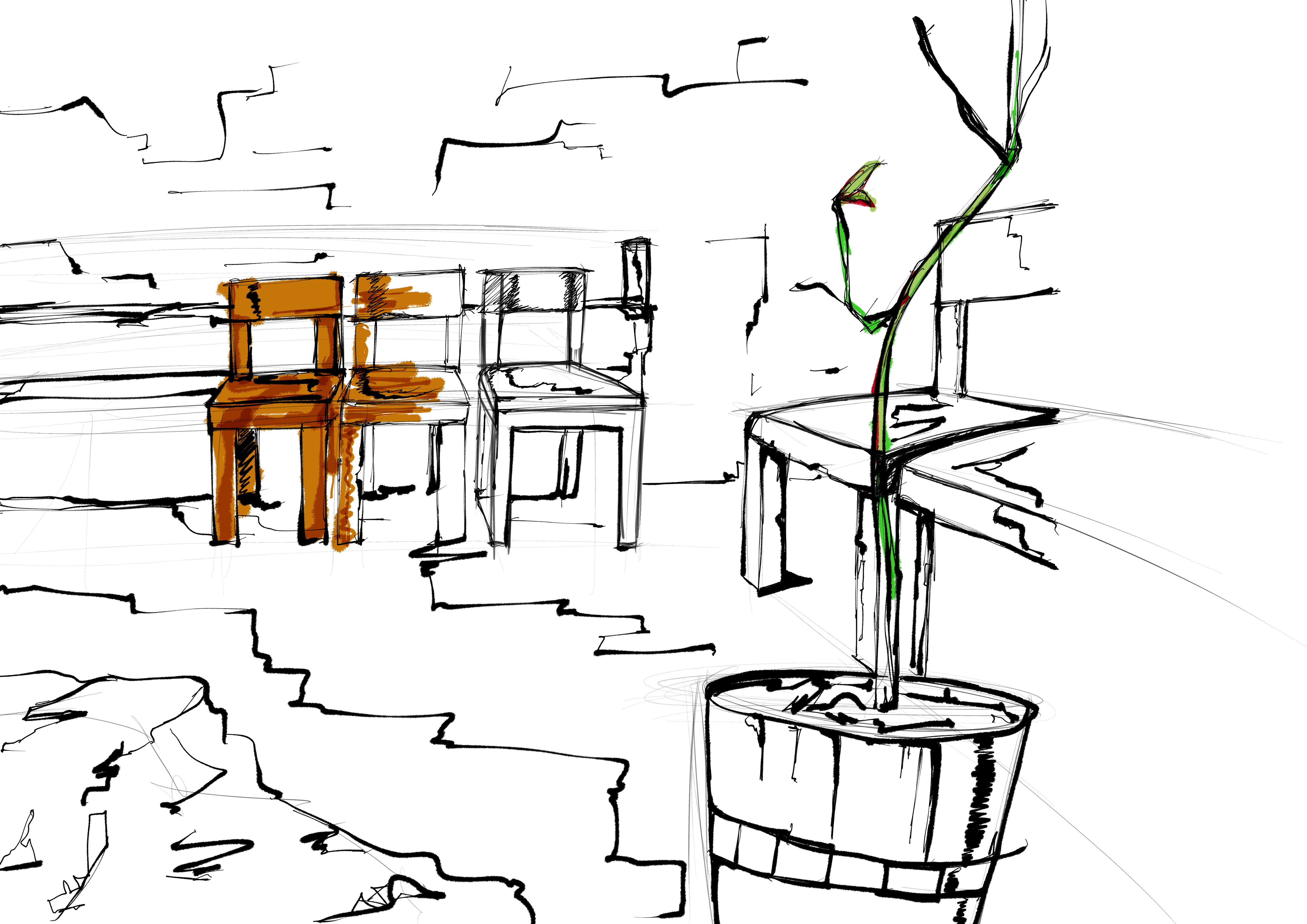 해당그림을 그리면서, 실제 눈에보이는 물체 혹은 알고있는 형태에 대한 선의 부담감이 있다고 지적하였는데, 매우 그러했다. 좀더 의자같이, 좀더 투시가 틀리지않게 등, 3분할 법으로 해당 물체를 칠하는등을 잘 캣치하여 말해줘서 다음엔 좀 더 가볍게 그려볼수 있다고 생각되었다.