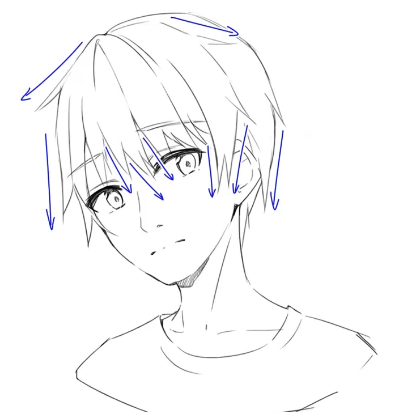 따라서 남성의 머리카락을 그릴때는 최대한 직선에 가깝게 볼륨을 주자