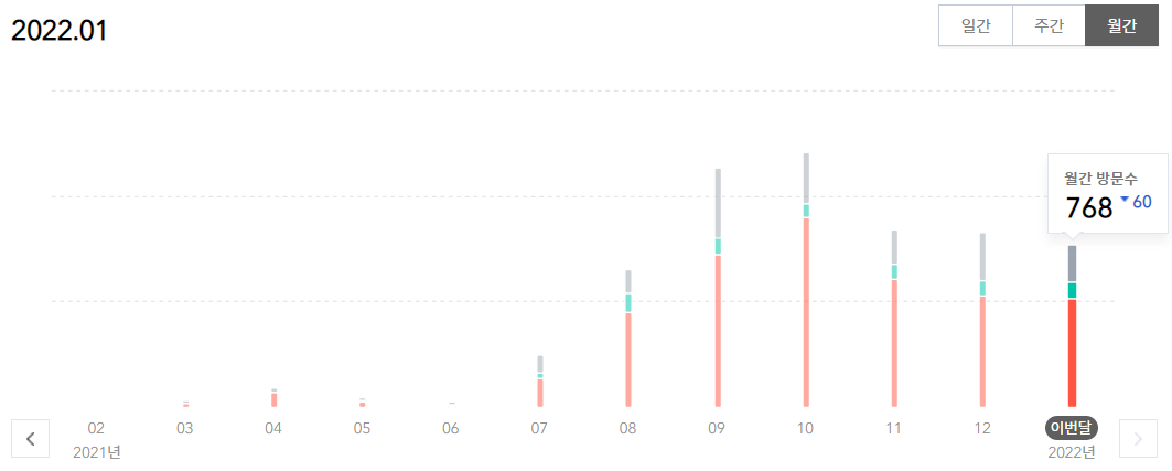 방문자현황을 보면 현황유지의 형태로 가는 듯하다. 지금 보다 조금더 분발해야할 것 같다.