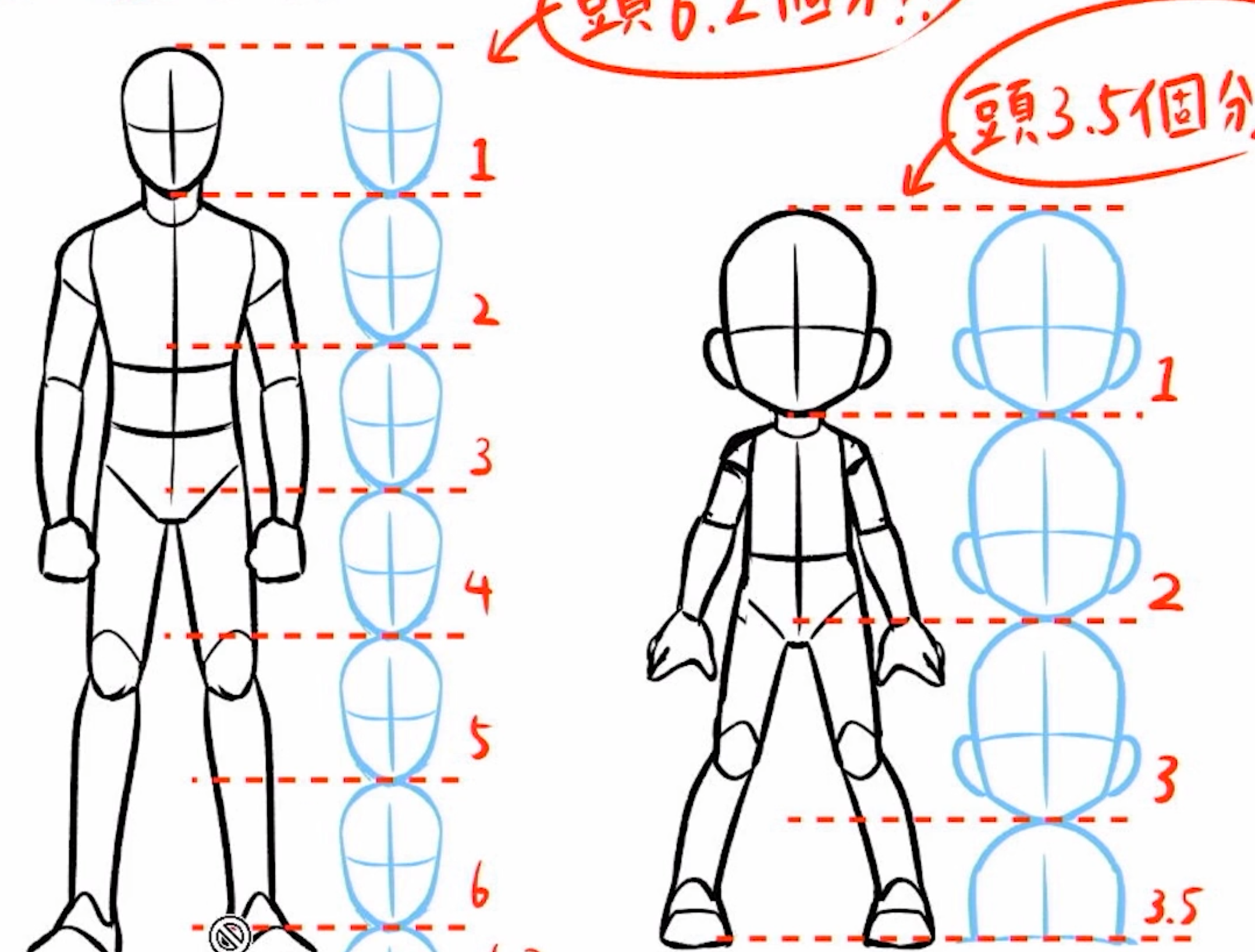 위 설명과 같다. 6등신에서 2번쨰 머리가 끝나는 부분이 명치입니다! 4번째가 끝나는 부분은 무릎입니다와 같은 기준에 의거하여 그려지기에 정확한 비율을 계산해낼수가있다.