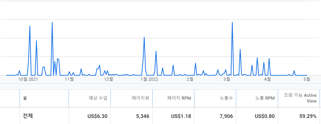 에드센스가 2021년 9월 부터 시작했으니 지금까지의 현황을보면