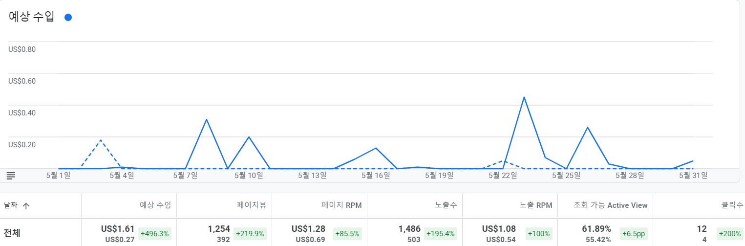 역시 방문자가 늘면 자연스럽게 수익이 는다는 것도 알게되었군요.