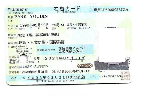 그리고 출국을하면, 재류카드에 펀칭을 내준다!