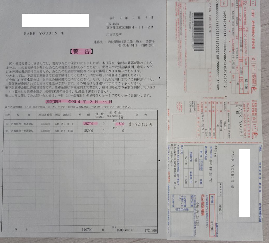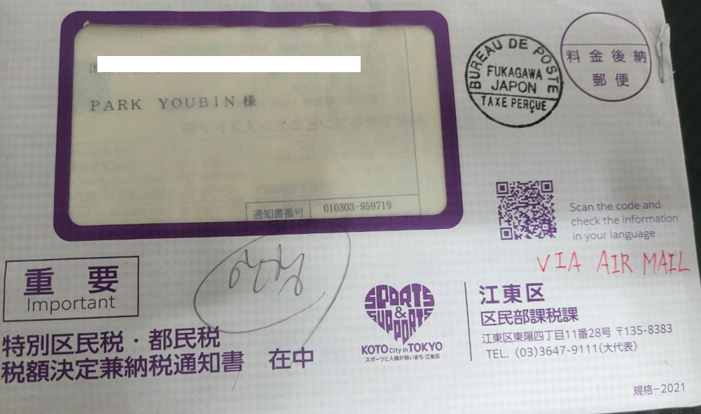 일본에서 2년 가까이 생활하다가, 한국으로 돌아오려고했는데, 난 주민세 내는 것을 깜박한 것이였다.