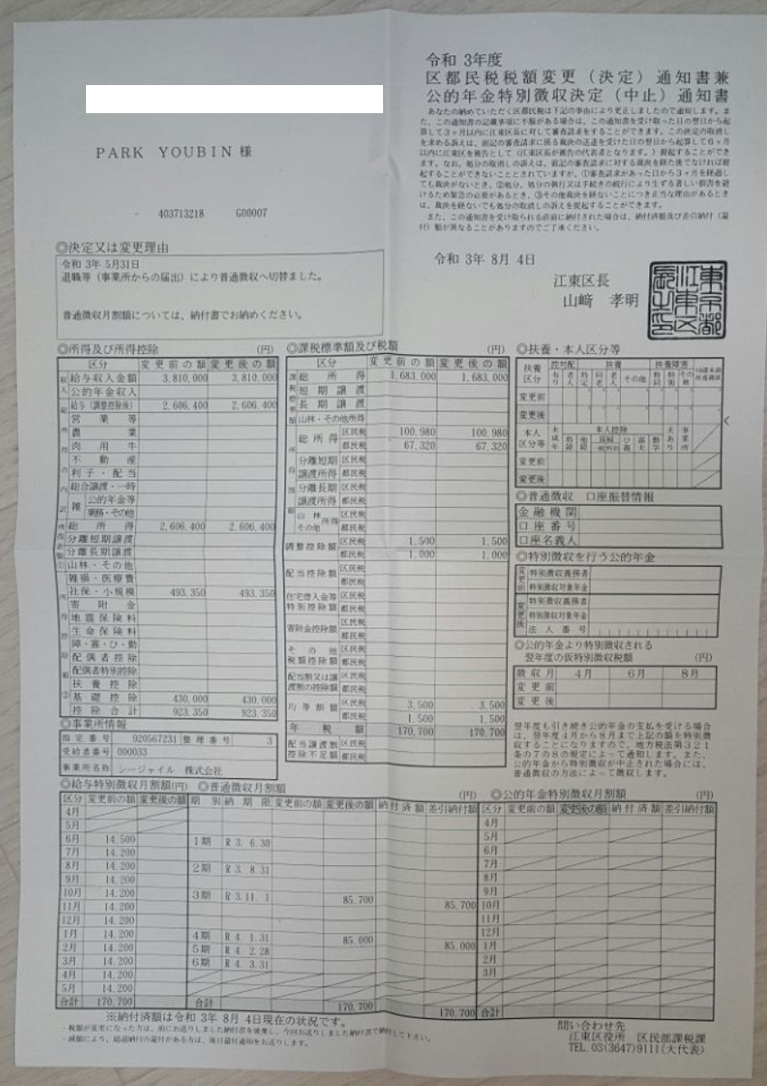 이 안에는 내가 내야할 주민세의 금액과 주민세가 어떻게 계산되는지에 관한 설명서 등이 들어있었다.