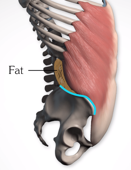 외복사근의 측면은 장골능을 따라 붇지만은 지방패드로인해서 장골능의 라인을 따라가다가, 외복사근라인을 타게됩니다.