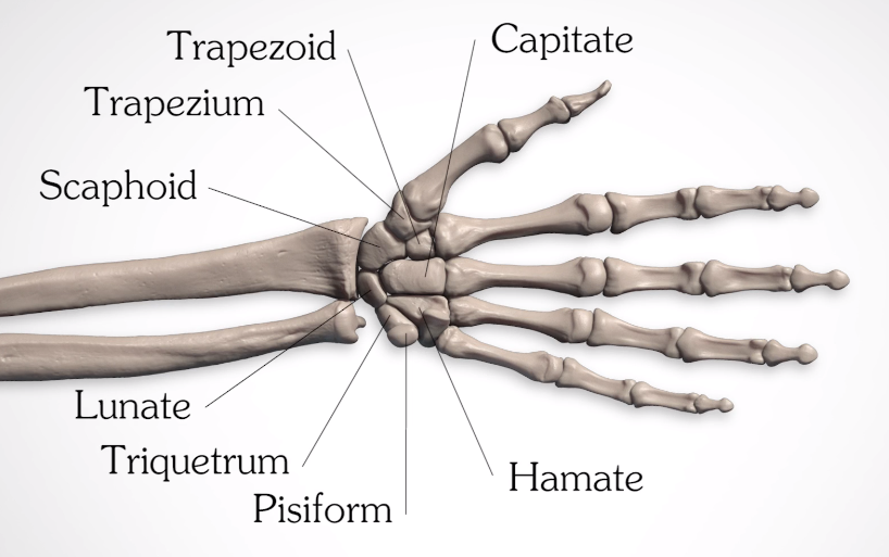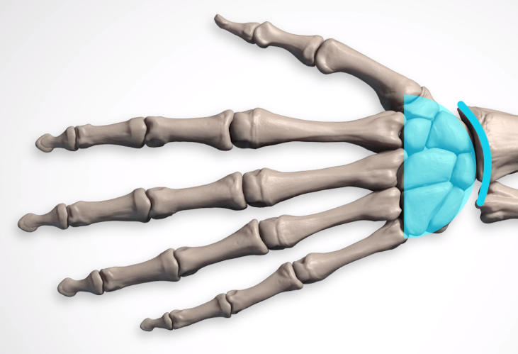 완골은 반원의 형태로 구성되어있습니다. 또한 자골과 요골에 대해서도 전 시간에 배웠으며, 이러한 구성덕에 손의 운동 범위가 달라진다는 것 또한 알고 있을 것입니다.