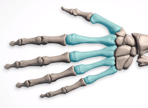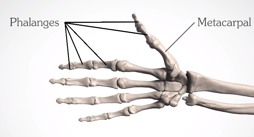 지골은 3개의 마디로 구성되어있지만 엄지만은 예외입니다. 엄지는 2개의 지골로 이루어져있지만, 엄지의 중수골은 지골의 기능과 더 유사합니다.