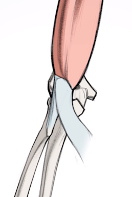 이러한 힘줄로 인해서 하박에서 보조개 같은 형태의 요철을 확인 할 수 있습니다.