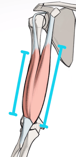 이러한 형태때문에, 회내를 했을경우 상완이두근이 늘어지고 회외를 했을때 상완이두근이 수축됩니다.