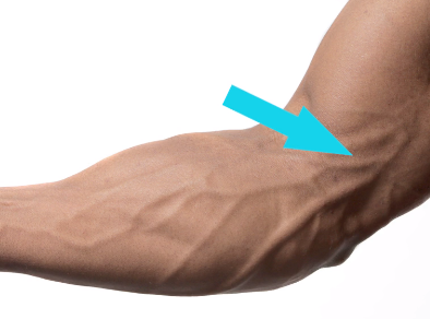 상완이두근의 널 힘줄(bicipital aponeurosis)은 팔뚝 위의 피부에 붙습니다.